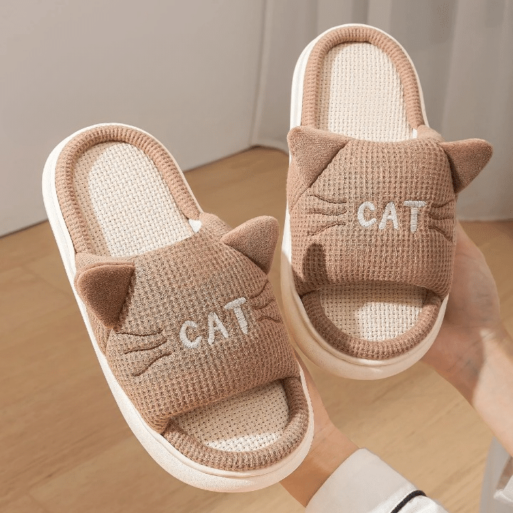 Ces chaussons chat marron été ont une forme ouverte, ce qui les rend faciles à enfiler sans effort le matin ou le soir.