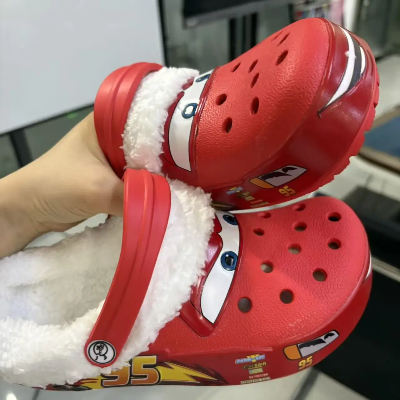 Les chaussons flash fourré séduisent dès le premier regard avec leur design rouge éclatant inspiré de Flash McQueen.