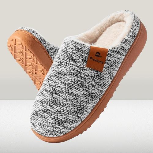 Le design combine le gris tricoté et des touches de marron pour un style sobre et moderne qui s’adapte à toutes les tenues d’intérieur.