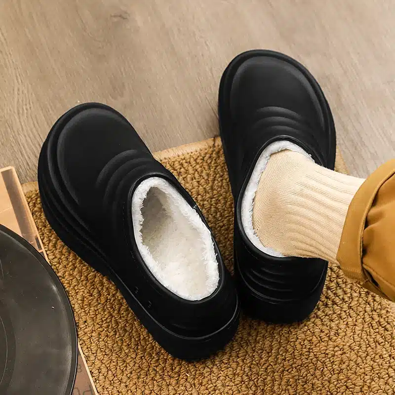 L’intérieur doublé d’une fausse fourrure blanche est très doux et garde les pieds bien au chaud pendant les journées froides, ce qui est parfait pour l’hiver.