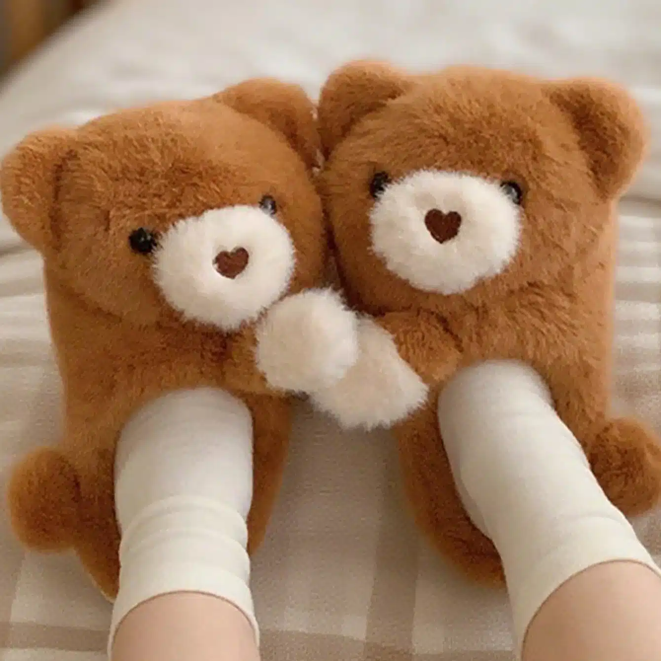 Leur design en forme d’ourson avec un petit nez en cœur et une peluche brune toute douce apporte une touche adorable à vos pieds.