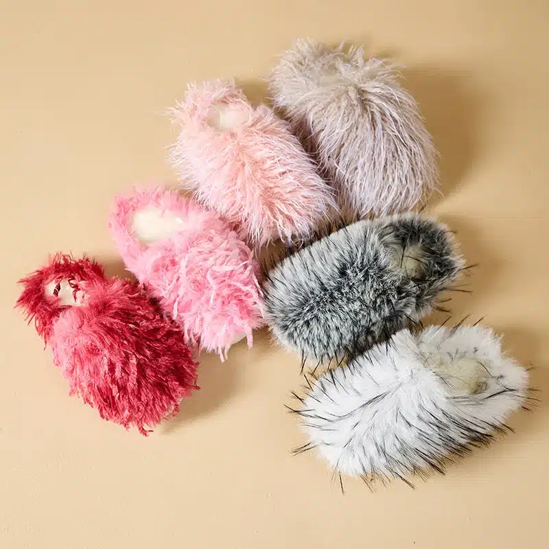 Ces chaussons touffus ont un aspect poilu et texturé qui imite une fourrure sauvage et attire tous les regards.