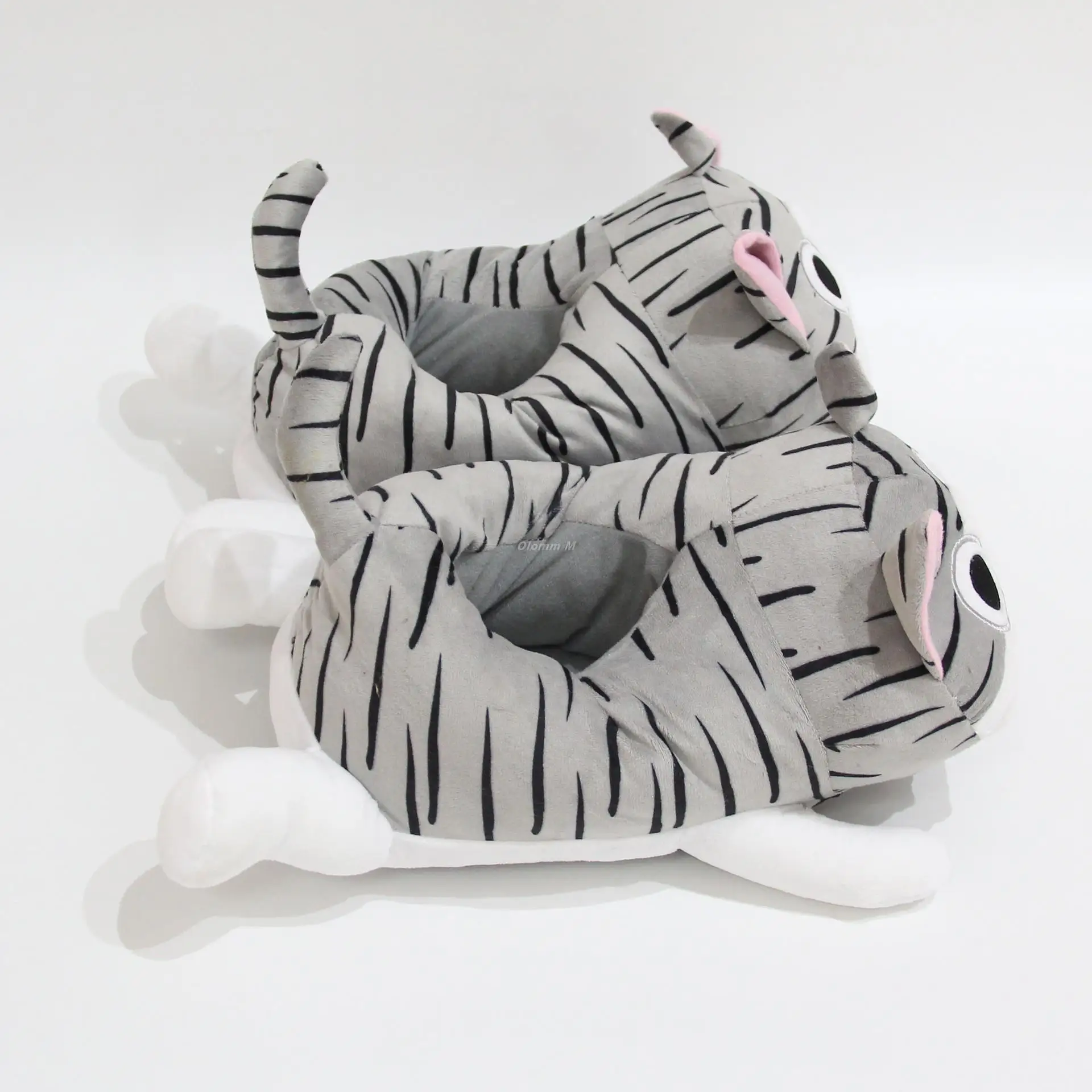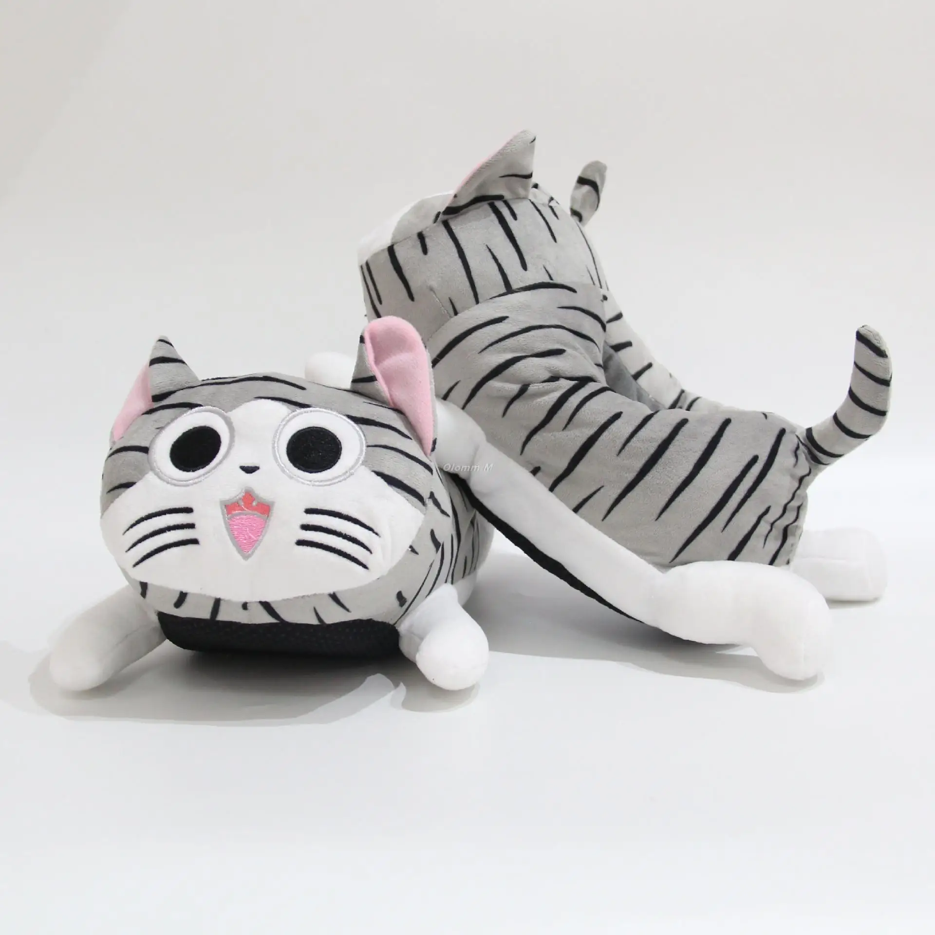 Ces chaussons chat gris tigré sont pensés pour envelopper tout le pied jusqu’à la cheville, avec une forme douce et arrondie qui garde bien la chaleur.