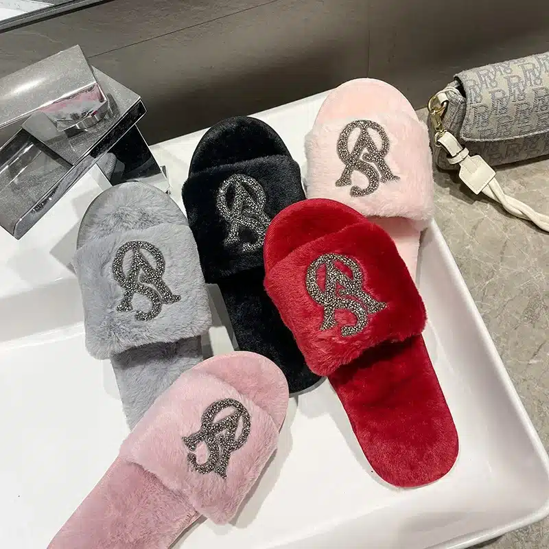 Ces chaussons doux ouverts femme ont un logo scintillant en strass sur le dessus qui ajoute une touche glamour et féminine à ces chaussons.