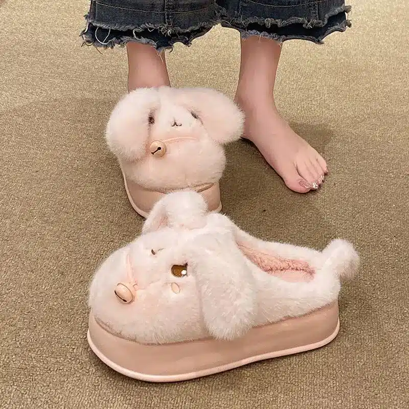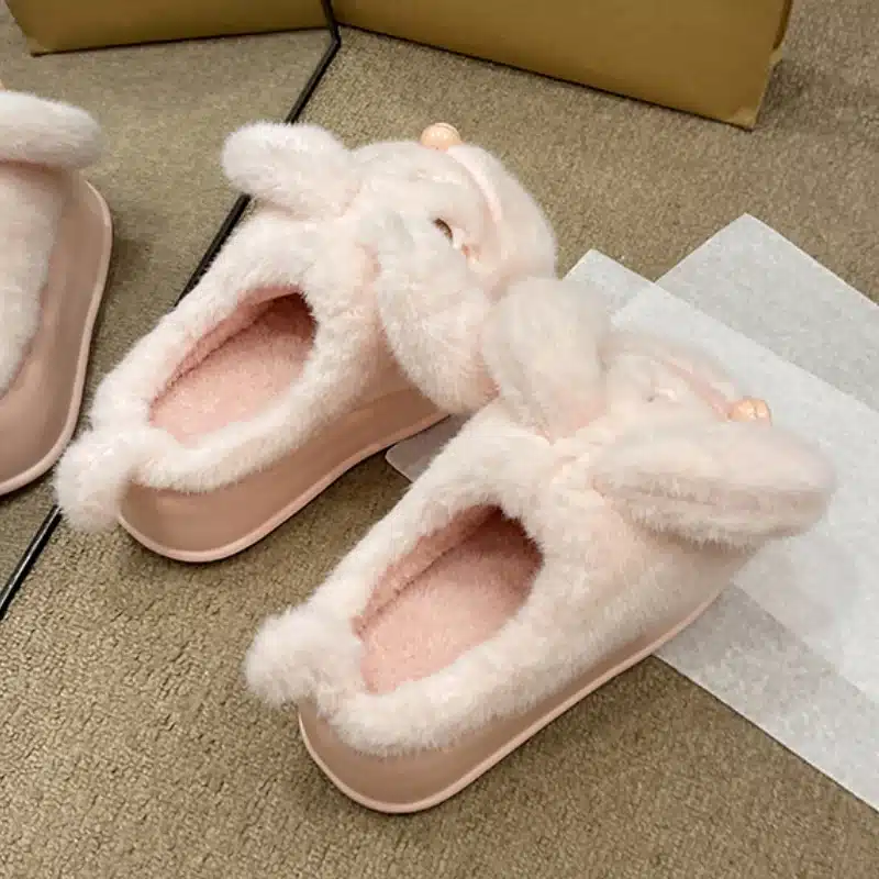 Disponibles du 35 au 39 et proposés en blanc, beige ou rose, les chaussons lapin semelle épaisse combinent confort, chaleur et une touche de bonne humeur au quotidien.