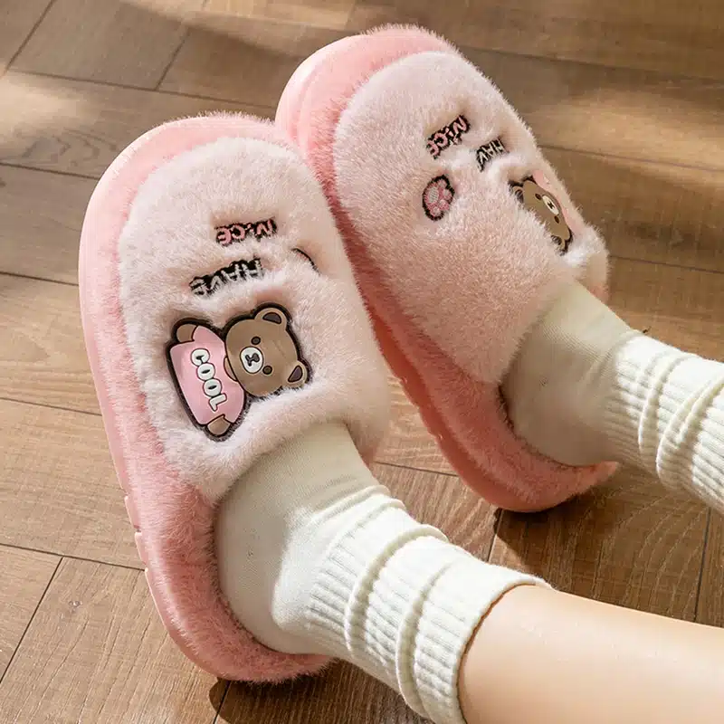 Le petit ours brodé en relief avec son pull “COOL” donne tout le charme des chaussons ourson mignon.