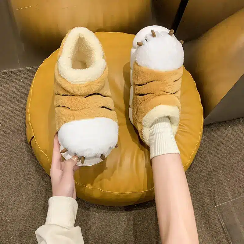 Les chaussons pattes de tigre montantes se distinguent par leur design fun en forme de pattes d’animal, avec griffes en relief pour un look sauvage et amusant.