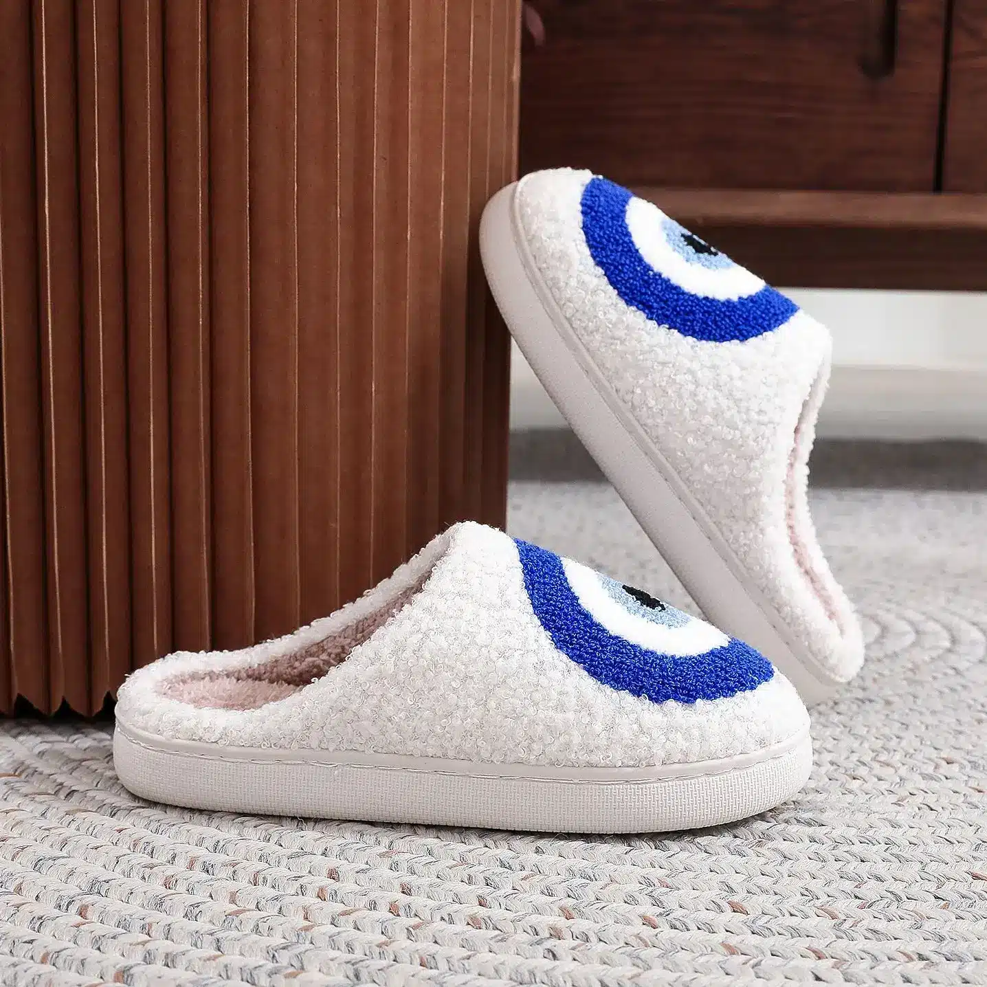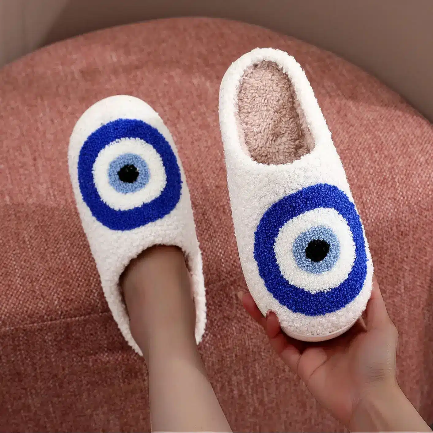 Les pantoufles oeil bleu sont parfaites pour allier confort, style et une petite dose d’énergie positive au quotidien.