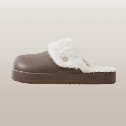 Elles sont en fausse fourrure et mousse EVA, un mélange qui assure confort et solidité.