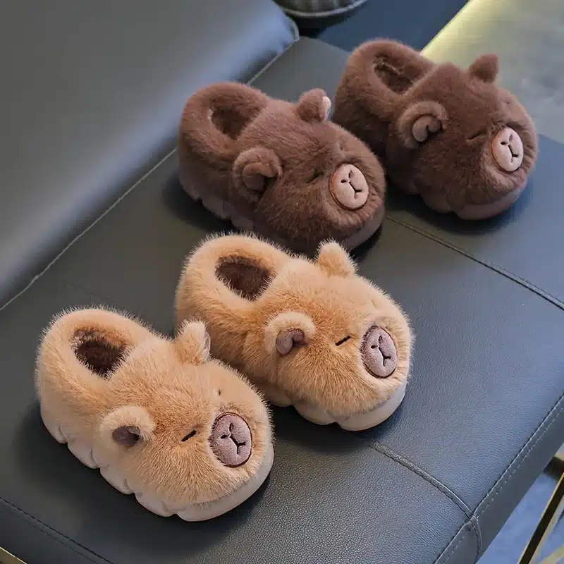 Ces pantoufles capybara sont fabriquées en peluche et coton pour un confort optimal.
