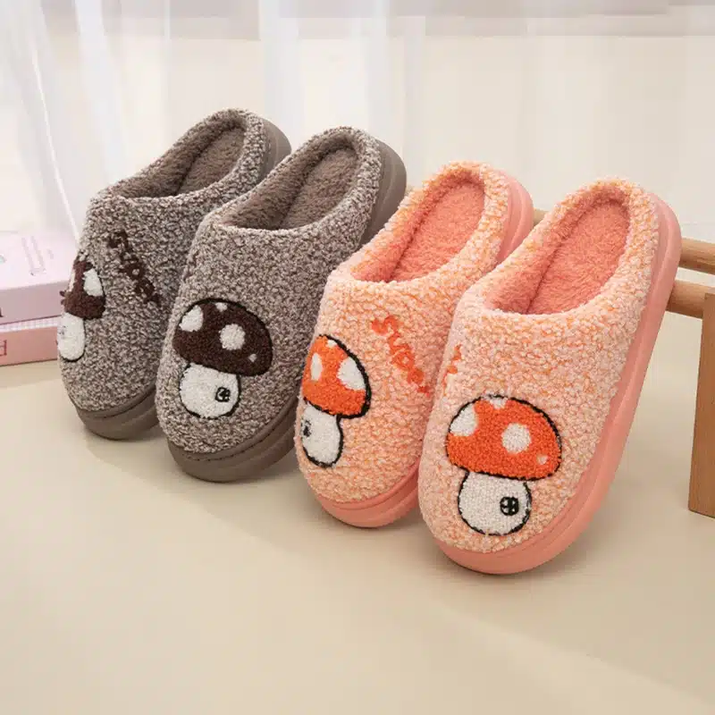 Ces pantoufles champignon sont disponibles en plusieurs coloris — rouge, gris, orange ou marron — pour s’adapter à toutes les envies.