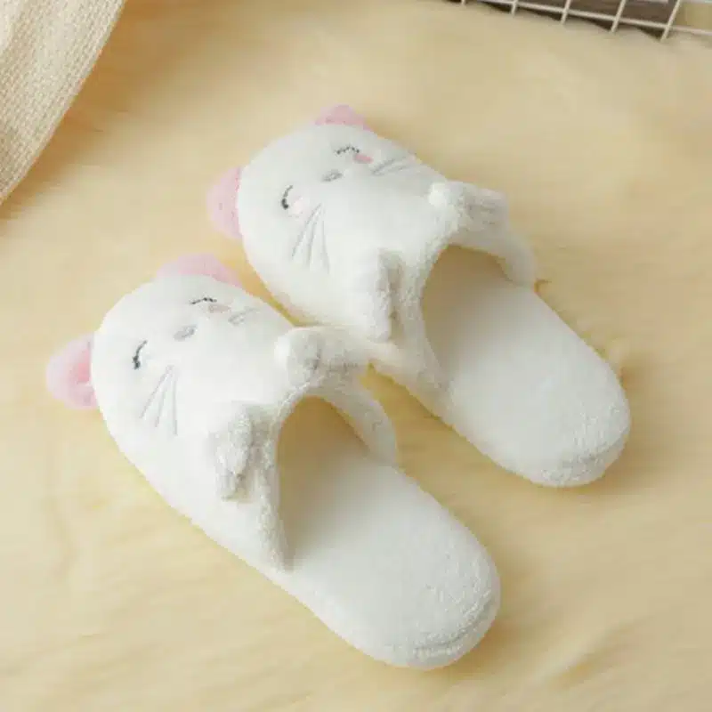 Cette pantoufle ouverte blanche met en scène un chaton mignon qui orne le dessus du chausson.
