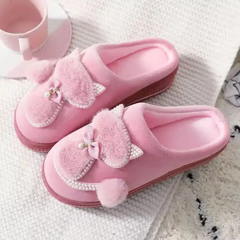 Ces pantoufles chaton élégant sont de couleur rose pastel avec une texture douce et veloutée qui offre confort et chaleur à vos pieds.