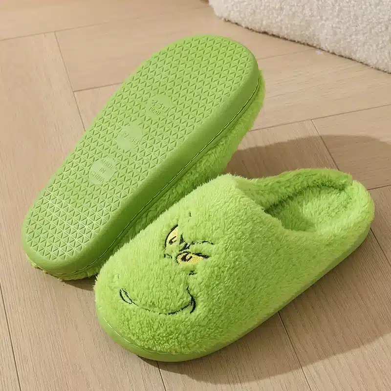 Les pantoufles Grinch offrent un confort immédiat grâce à leur matière peluche toute douce qui garde les pieds bien au chaud dès qu’on les enfile.