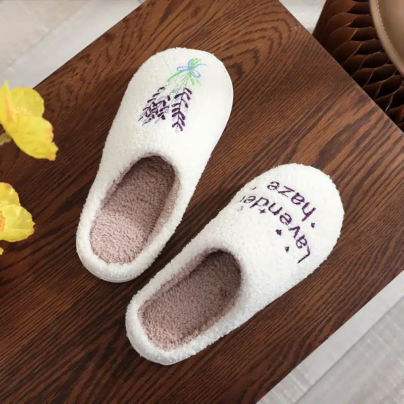 Ces pantoufles lavande dégagent un charme doux et réconfortant, inspiré par la sérénité de la lavande.