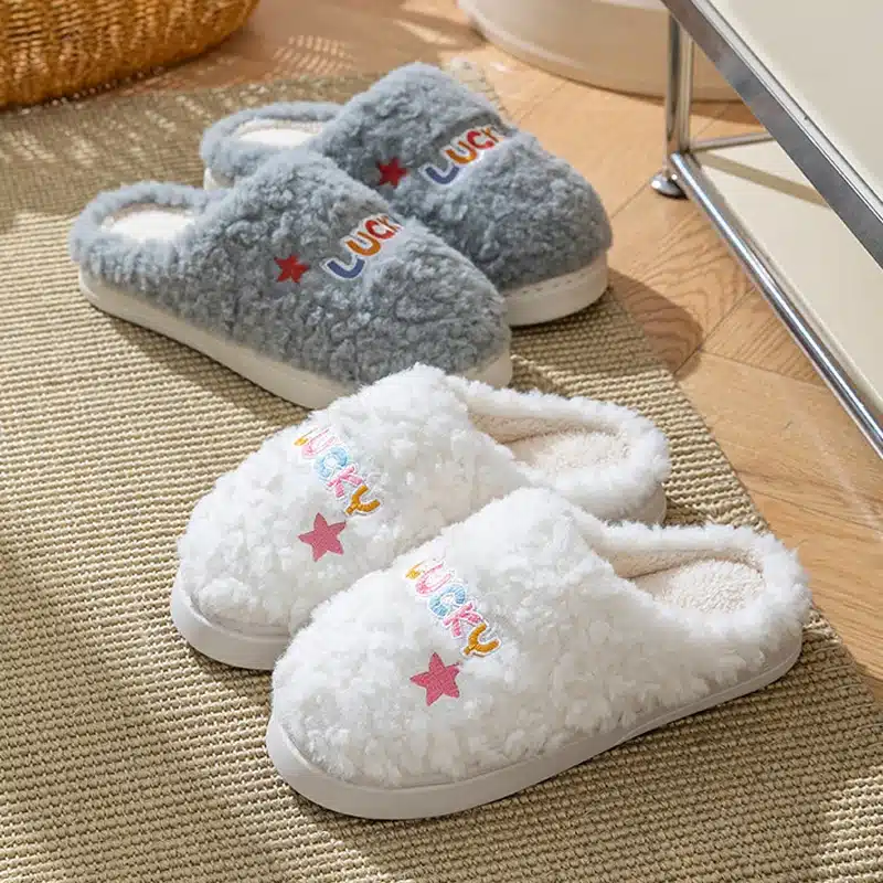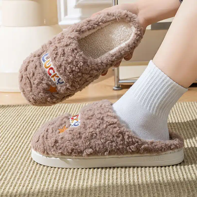 Disponibles en gris, blanc, rose ou marron, les pantoufles Lucky conviennent aussi bien aux femmes qu’aux hommes.